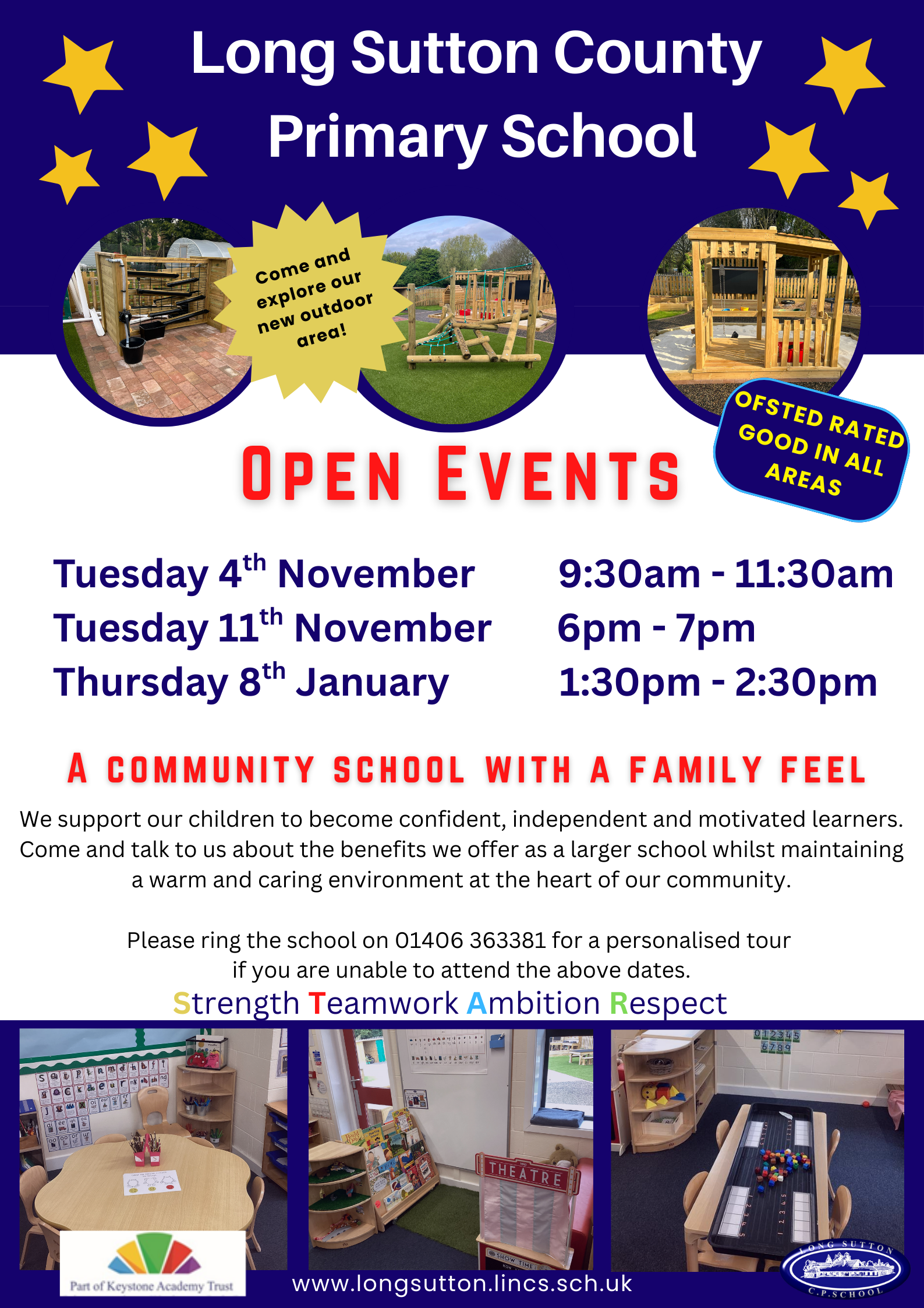 Long Sutton County Primary School is incredibly proud of serving the whole community as the only Primary School in the town of Long Sutton. The school decided, after several years of developments and improvements, to become an academy and joined the local Keystone Academy Trust. This allows us to continue our work at the centre of the local community as well as ensuring that our children receive the best education possible.